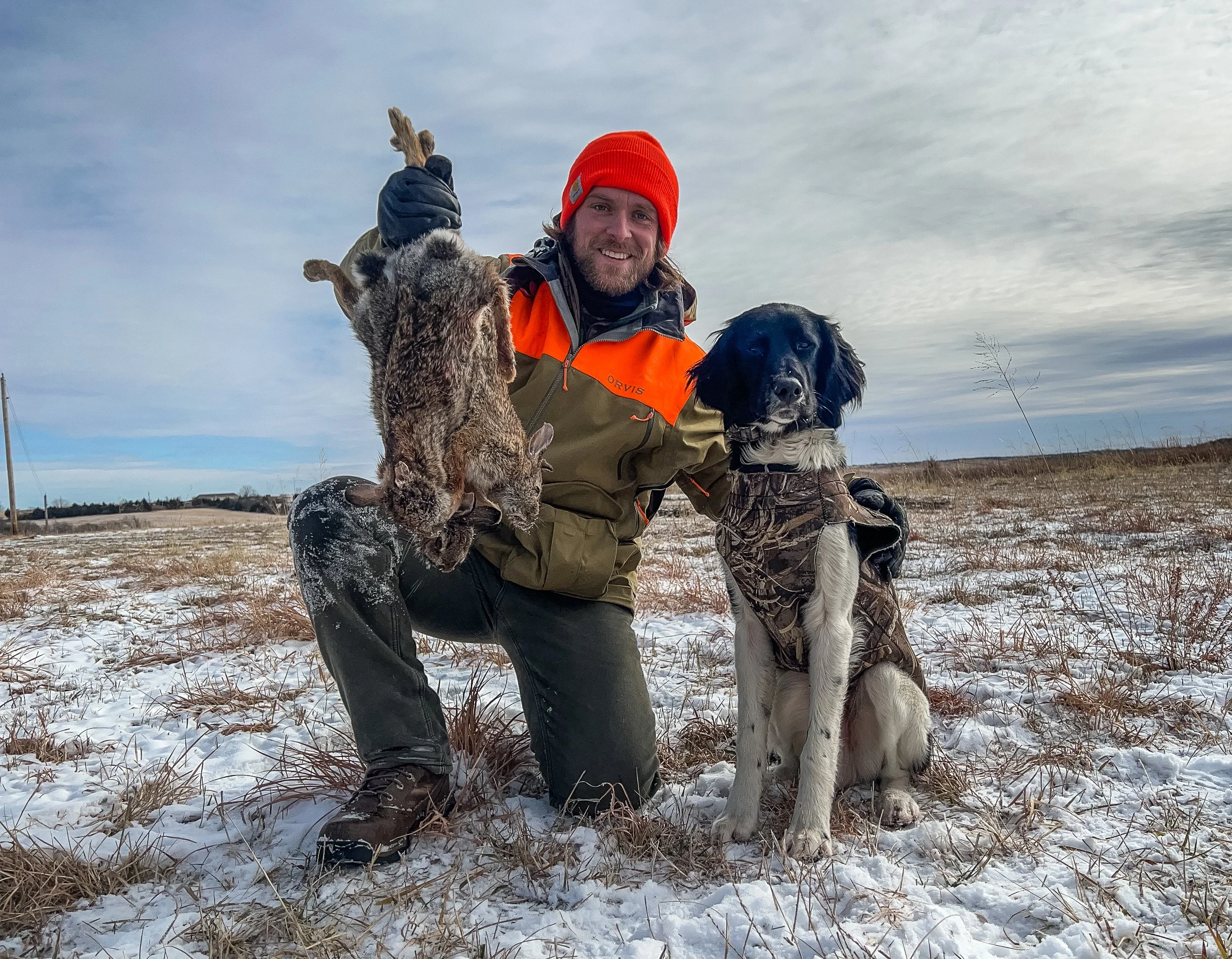 Aldo and I with our Christmas Eve ‘22 rabbits. This was the hunt that Aldo sustained his eye injury.